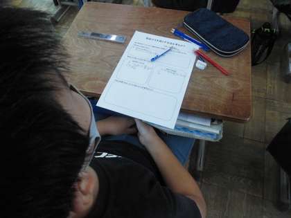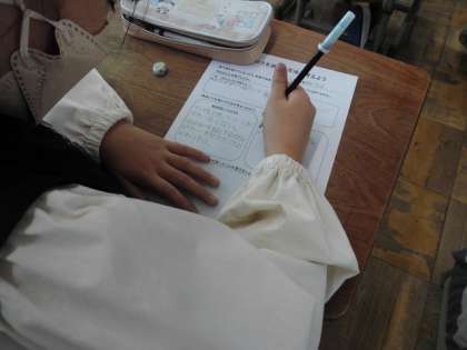 栄養教諭の先生と食品ロスについて考えました。「残す」習慣がついていないか自分を見つめなおしましたが、「残す」どころか飢餓に苦しんでいる人たちが地球上にたくさんいることを知りました。そのあとの給食では、残さず食べようとする子たちがたくさんいました。有難さを感じながら、食生活を送ってほしいと思います。
