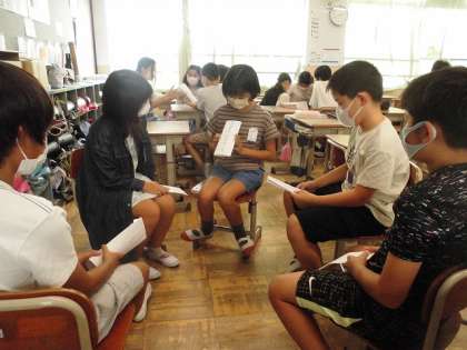それぞれが好きな筆者が書いた本を紹介しました。みんなほかの人が選んだ筆者や本に釘づけでした。本で学びを深めていきましょう。