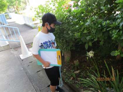 秋の七草について学んだり、ヒガンバナを観察したりしています。学校でも白と赤のヒガンバナを見つけることができました。