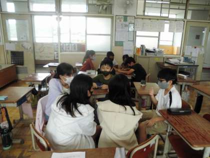 グループで話し合い活動をしました。リーダーを中心に楽しそうに話し合っていました。