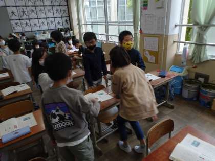 「修飾語を使って、分かりやすい文を書けるようになろう。」というめあての授業でした。主語と述語のみの文に、即席で修飾語を加えて文を作って話したり、書いたりしました。「僕から話させて!」「文ができたし聞いて!」と、とても意欲的でした。色んな文ができて思わず笑顔がこぼれる授業になりました。