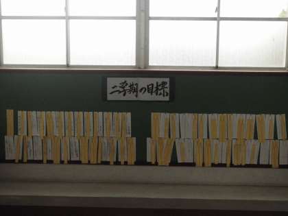 2学期の初めにたてた目標を振り返り,自己評価しました。達成できたと思う人は新たな目標を立てました。