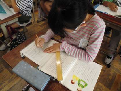 「綾ちゃん」が出会ったものや人がどのような影響を与えたのかを考え,自分の考えと合わせながらノートにまとめました。