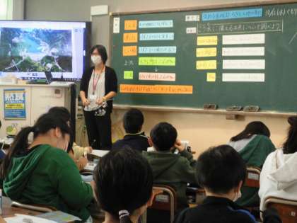 「流れる水の働き」の学習です。水の力のすごさを確かめました。写真を見ながらどのような働きがあるのかを話し合いました。