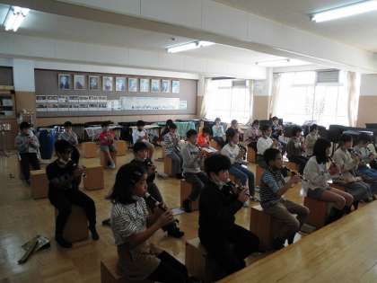 合奏でアフリカンシンフォニーを演奏します。リコーダーの演奏、本当に上手になっています。