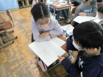 「面積」の学習です。これまでに学習した面積の公式を使って,台形の面積の求め方を考えました。
