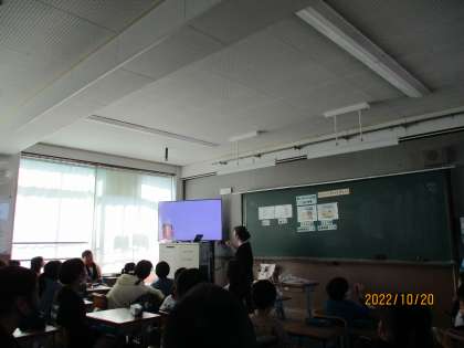 今日は4年1組で栄養教諭の先生による食に関する指導がありました。今日のテーマは「かむことの大切さ」でした。縄文時代の食事と現代の食事をくらべると、かむ回数が大きく違いました。かむことはいろいろな良いことがあると知りました。これからの食事でかむことを意識できるとよいです。来週は4年2組で授業があります。