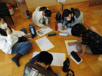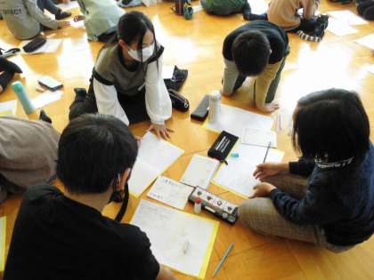 グループでどのように進めていくのかを話し合っています。熱心に話し合っています。