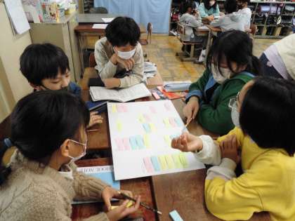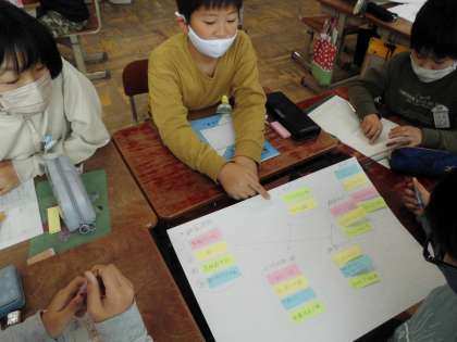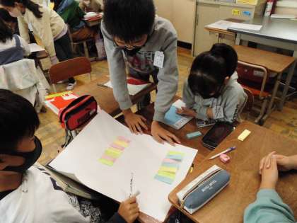 同じような意見をまとめたり,分類した意見を線でつなげたりしながらグループの中での意見を整理することができました。