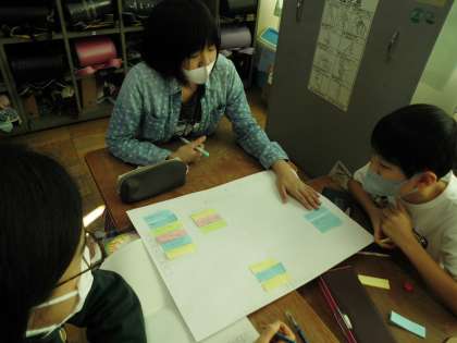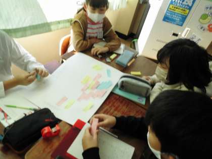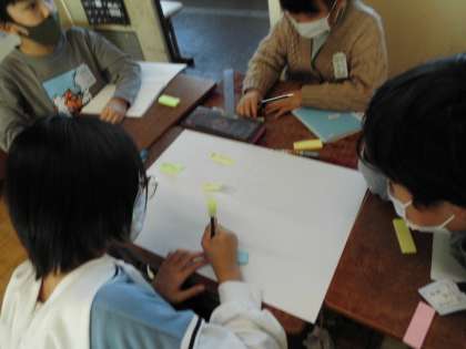 「より良い学校生活のために」の学習です。グループで問題解決に向けて自分の考えを出し合いました。付箋を活用して整理していきました。