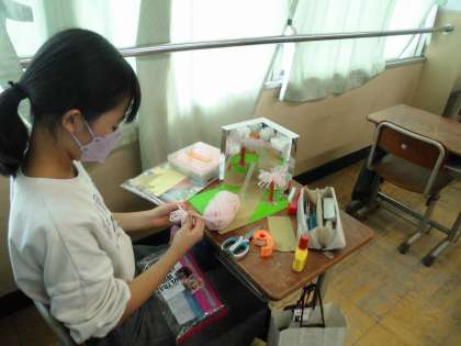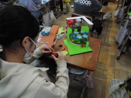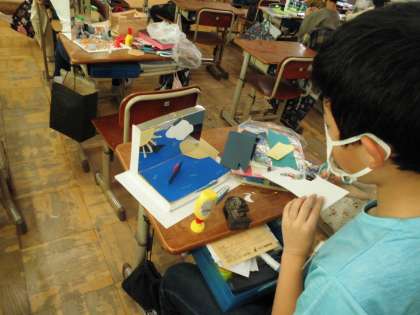 ミラクル!ミラーステージの学習です。どんどんイメージを膨らませ,鏡に映る世界を作りあげていきます。
