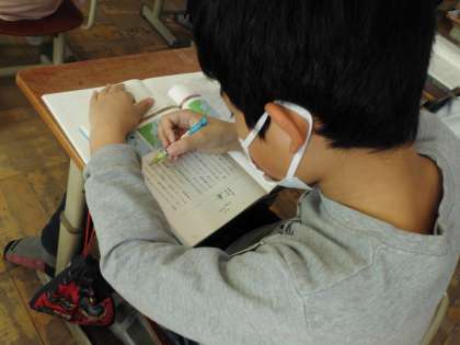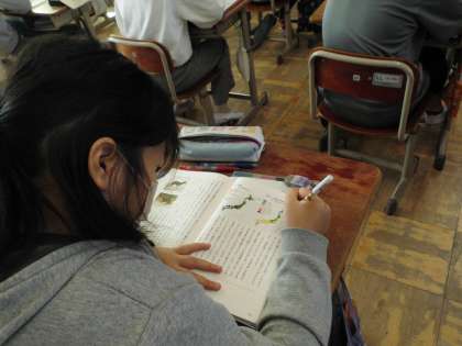 「固有種が教えてくれること」の学習です。文章を読んで段落を確認したり,どのようなことが書いてあるのかを話し合ったりしました。