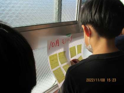 学年発表会に向けて、学年で集まって、4年生の前半を振り返りました。その内容を整理して、学年発表会で発表会しようと計画しています。