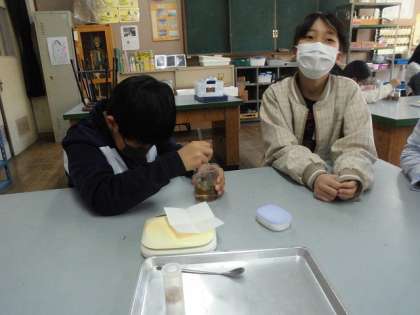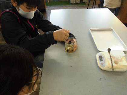 いろいろな水溶液を作って、気になったことや分からないことを調べています。