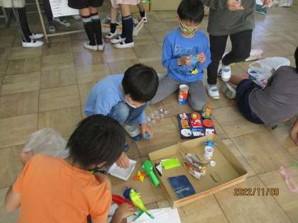 生活科「あそんでためしてくふうして」の学習で、来週金曜日に1年生・あおぞら学級のみなさんを招待して、手作りおもちゃで遊んでもらう企画をしています。おもちゃフェスティバルに向けて、子どもたちは遊びのルールを説明する練習をしたり、遊びを試してみたり、工夫したりしています。1年生・あおぞら学級のみなさんが楽しめるように、全力でおもちゃを作っています。お家でも、お話を聞いてくださると嬉しいです。