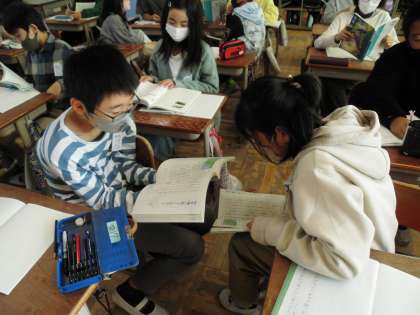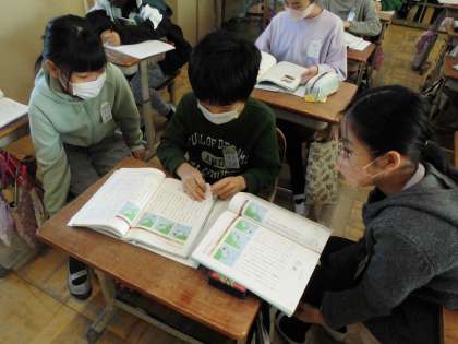 「固有種が教えてくれること」の学習です。初め・中・終わりの区切りがどこなのかを話し合いました。筆者の考えを手掛かりにして見つけていました。