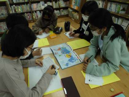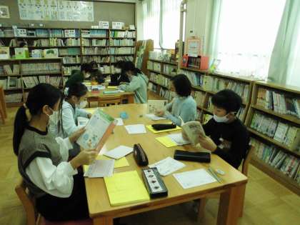 自分たちの調べたいことを探してカードにメモしています。みんな熱心です。