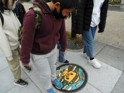カップヌードルミュージアム大阪池田に到着です。マンホールまでひよ子ちゃんでした。
