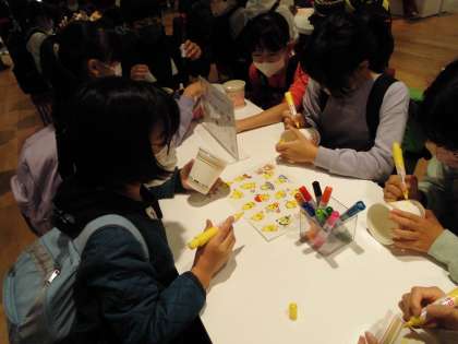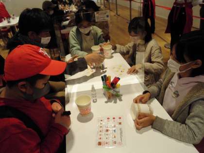 世界に一つだけのオリジナルのカップヌードル作りに挑戦です。パッケージのデザインにも個性が光りますね。