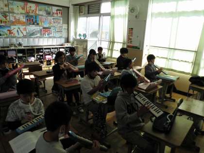 パートに分かれて練習しました。鍵盤ハーモニカの音色が響いています。