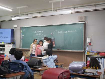 新聞係さんが作った新聞を紹介してくれました。クラスみんなにアンケートをとった結果や、クイズなど毎回工夫して作っています。