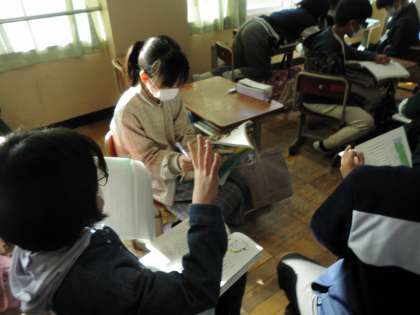 「固有種が教えてくれること」の学習です。中の段落について話し合いました。