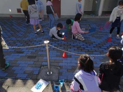 かがみの向きをかえたときのかがみではね返した日光の進み方を比べながら調べました。日光はまっすぐに進むことがわかりました。