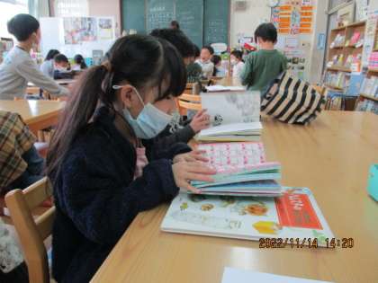季節に合った本を借りたり、読聞かせを聞いたりと楽しい時間を過ごしています。