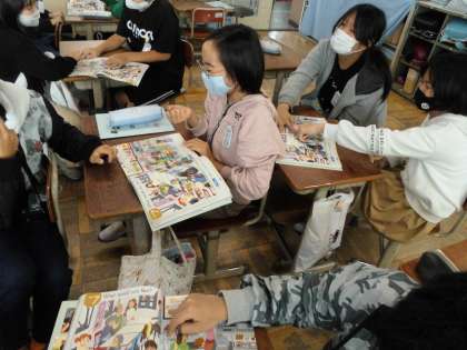 教科書を見ながらキーワードを探して,指で押さえるゲームをしました。
