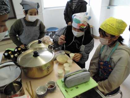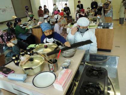 「だし」に学ぶ食育学習です。京料理『松廣』より出前授業に来ていただきました。昆布だし,かつおだし。この二つを合わせた合せ出しを飲み比べます。