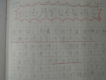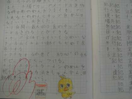 学んだことを定着させることができるように、各々が工夫しているのが一目でわかります。社会見学で学んだことや、テストの直し、予習など、いろいろな内容が見られます。