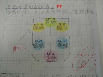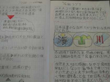 こちらは「出汁の授業」で学んだことや、総合的な学習の時間で知ったことについて書いています。かなりレベルが高い自主学習ノートに驚かされます。