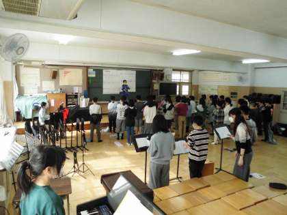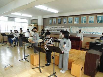 学年で合奏をしました。指揮者にあわせて素敵な音色を響かせていました。