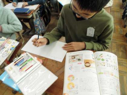 食べて元気!ごはんとみそ汁の学習です。食品の栄養素や主な働きについて調べました。