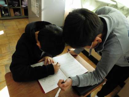 「分数(2)」の学習です。どのように考えたのかを伝え合いました。説明する力もどんどんついてきています。頑張っています。