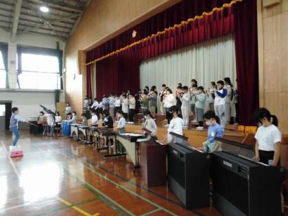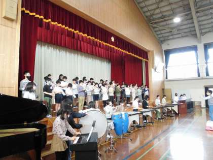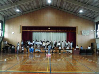 楽器を運びました。重いものもありましたがみんなで協力して音楽室から運びました。並び位置を確かめ,音を確かめながら練習をしました。