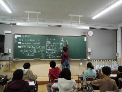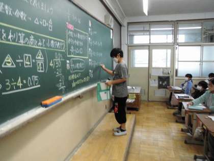 「分数(2)」の学習です。分数を小数であらわすには,どのように考えればよいのかをみんなで話し合いました。