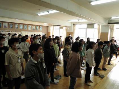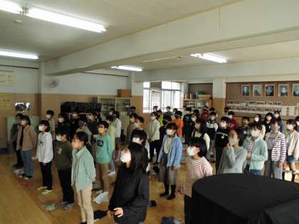 音楽室で歌の練習をしました。指揮者にあわせて美しい合唱を聞かせてくれました。
