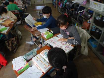 国語科でことわざの学習をしています。初めて出会うことわざに「へえ、こんな意味があるんや。」「これなんか聞いたことある。」などとつぶやきながら本と国語辞典にかじりついて学習していました。