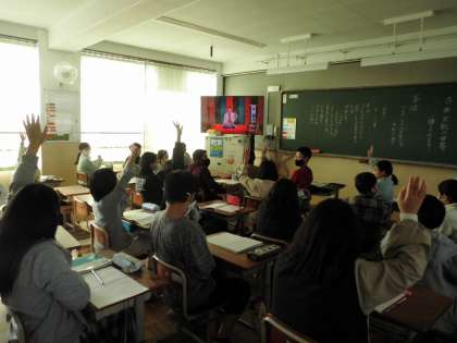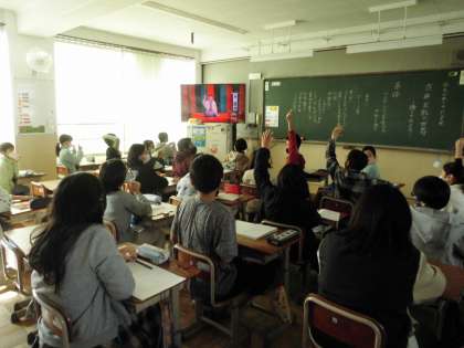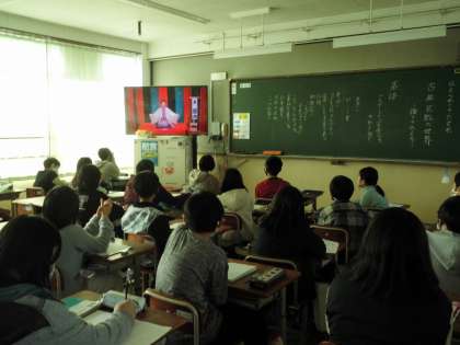 古典芸能の世界の学習です。「落語」について知っていることを話し合い,実際に落語をしている様子を見ました。予想以上の面白さでみんな夢中で見ていました。