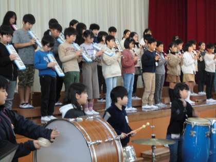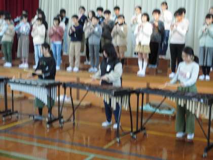 気合の入った合奏です。指揮者にあわせて学年が一つになった演奏です。素晴らしいです。
