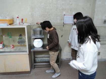 残菜調べをしています。調理員さんが心を込めて作ってくださっているおいしい給食です。みんな頑張って食べましょう。