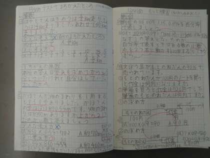 自主勉強で家庭科のテスト勉強に取り組んでいますね。自分でしっかりめあてを持って取り組んでいることが素晴らしいです。よく頑張っているね。