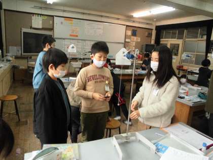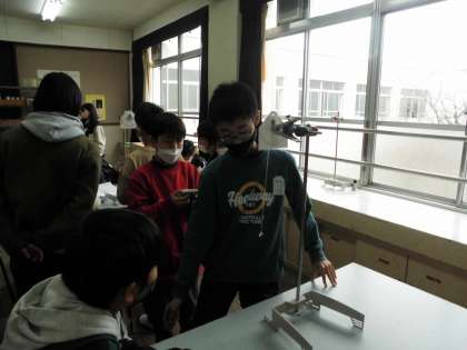 ふりこの動きの学習です。今日もグループで協力して実験しています。さて,どのような結果がわかるのかな?