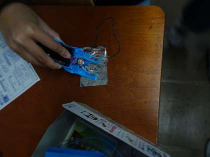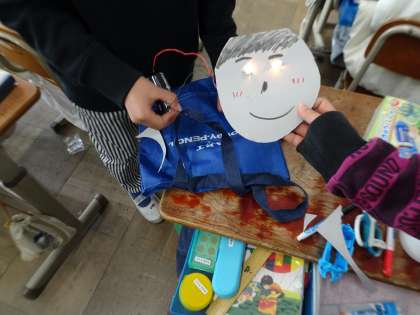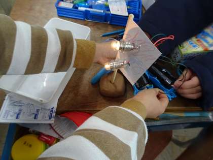 豆電球を使ったおもちゃ作りをしました。アイデアがたくさんあふれ、楽しい時間になりました。
