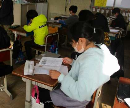 完成した伝統工芸品のリーフレットを読みあいました。よかったところや感想を読んで書きました。