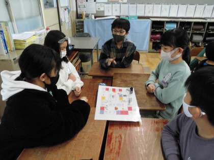 じゃんけんすごろくげームをしながら冬休みの出来事や楽しかった事などを伝え合いました。どのグループからも楽しそうな笑い声が聞こえてきていました。