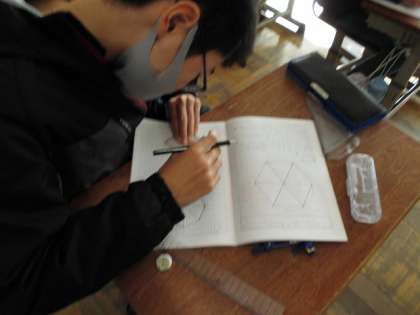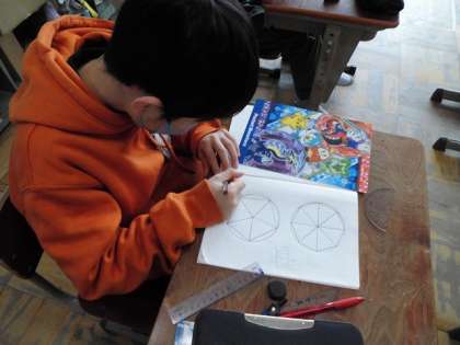 多角形の作図に挑戦しました。円を上手に使ってすると作図しやすいですね。