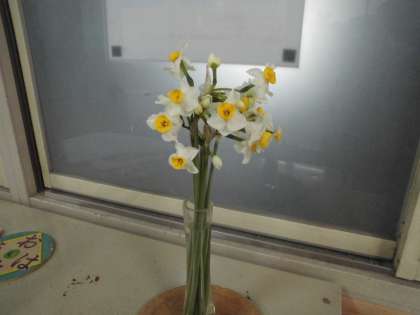 廊下に美しい花!やさしい香りについ足を止めて眺めてしまいます。