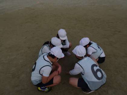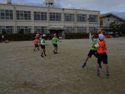 体育の時間にポートボールを練習しています。以前に学習したエンドボールのときのことを思い出して、作戦もしっかりたてられるようになっています。